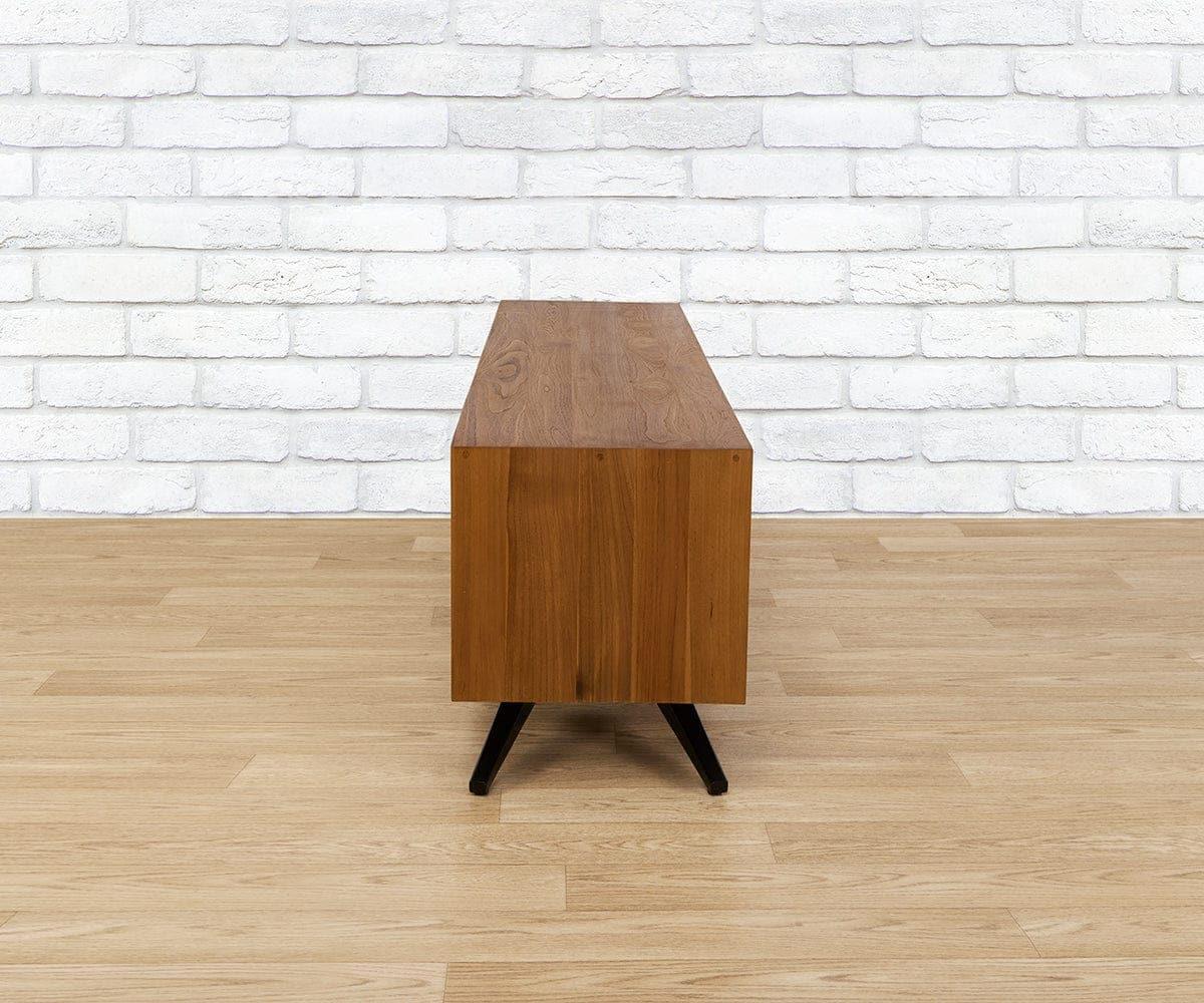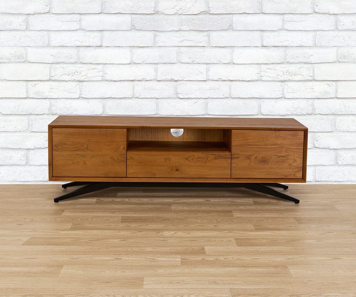 Ajoutez le meuble multimédia Mazi à votre espace et profitez d'une solution élégante pour garder vos appareils multimédias à portée de main. Rangez tout, des télécommandes aux consoles de jeux, et bien plus encore, dans les tiroirs et les armoires, et exposez votre téléviseur sur la grande surface. La collection Mazi présente une gamme de silhouettes saisissantes, réalisées dans un mélange de teck massif et de métal noir. L'association d'un métal foncé et audacieux et d'un bois aux teintes naturelles permet à ces pièces de s'intégrer facilement à tous les styles, du style Mid-Century au contemporain, et plus encore. Ajoutez la collection Mazi à votre intérieur et embellissez votre espace avec une fonctionnalité agréable et un style inoubliable.
